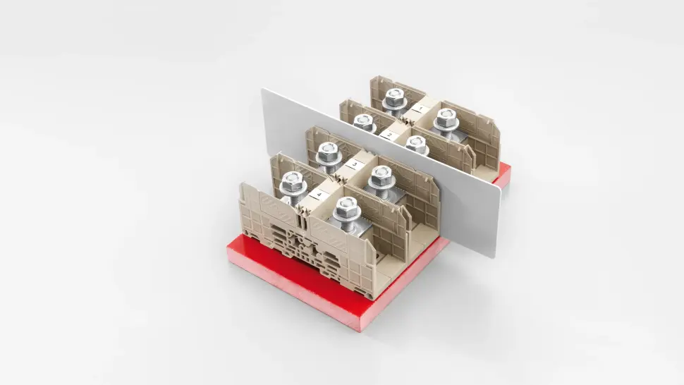 Kilit müşteri yöneticisi Hans-Jürgen Kern'in bir fikrinden ilham alan, Weidmüller mühendisleri, bölmelerin stud klemensler arasında yerleştirildiği özel bir tasarım geliştirmiştir. Klemensler ayrıca bir yalıtım paneline sabitlenerek 4 kV taşıyabilmeleri sağlanmıştır.